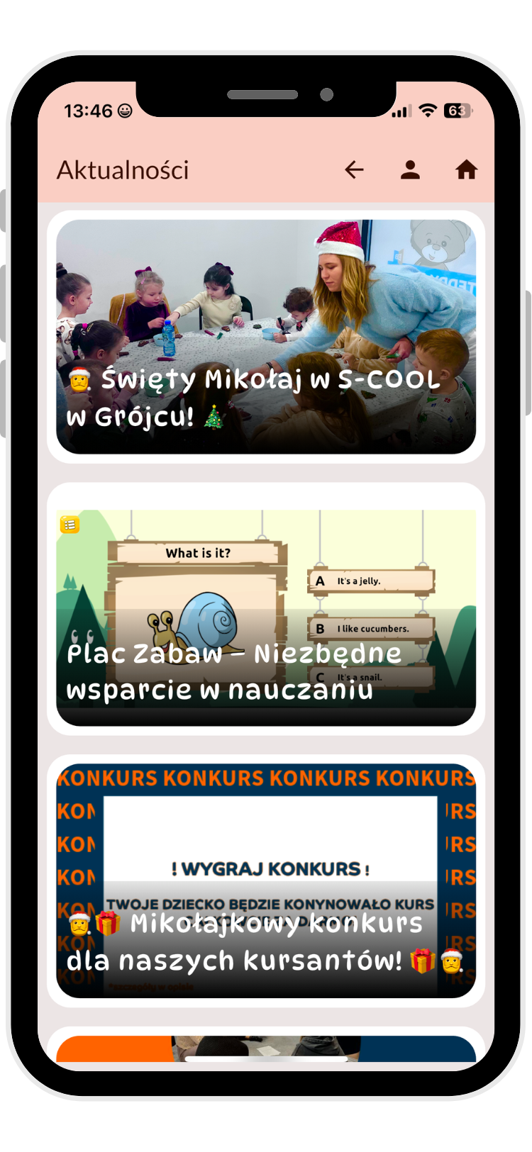 • Publikowanie treści marketingowych w aplikacji zwiększy sprzedaż dodatkowych kursów, wydarzeń a nawet towarów.